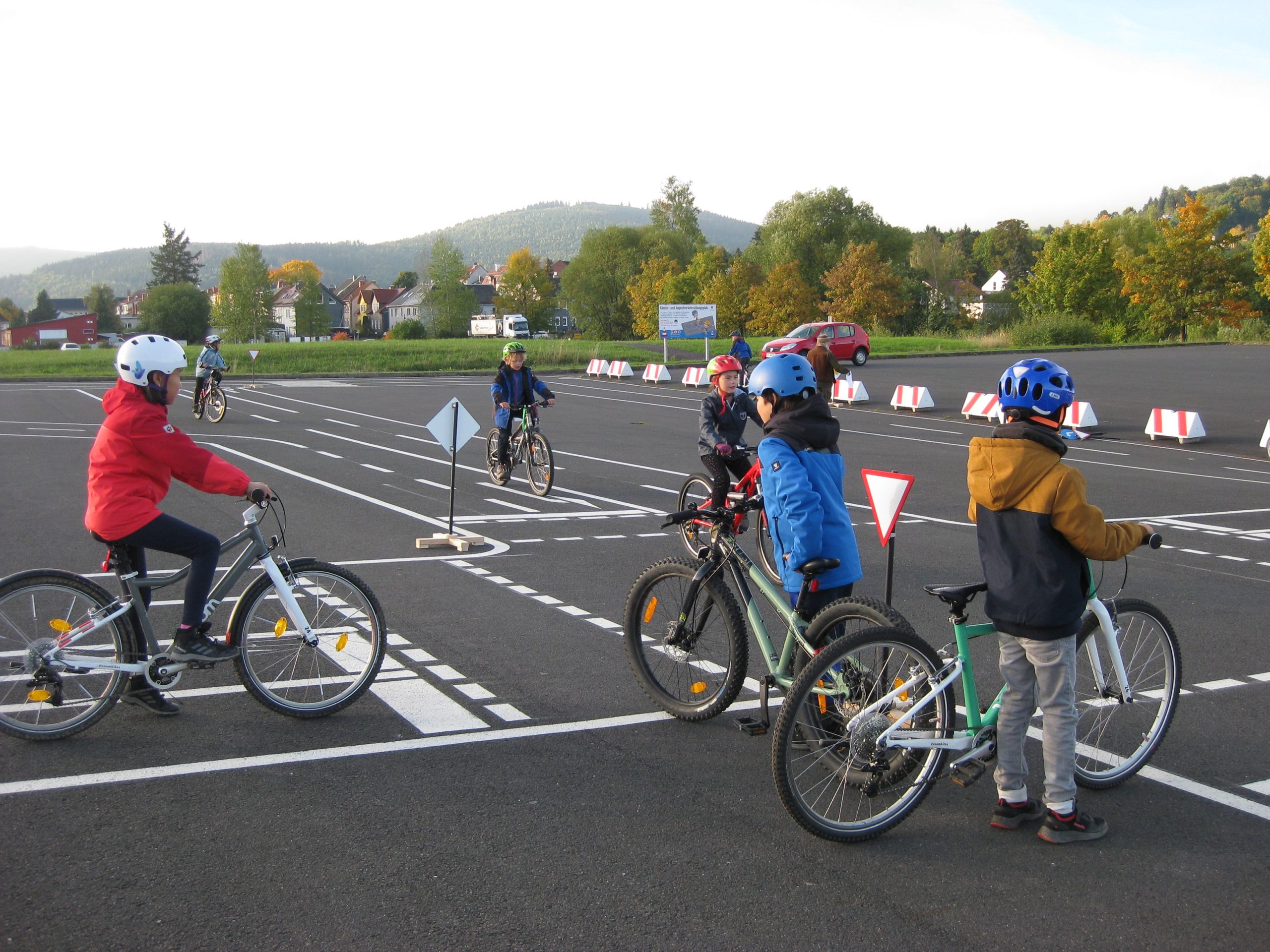 Geschafft! In nur drei Wochen haben die Schüler*innen eifrig das richtige Verhalten im Straßenverkehr, die Vorfahrtsregeln sowie das Linksabbiegen theoretisch und praktisch geübt. In der 2. Praxiswoche hatte sogar das Wetter ein Einsehen und sorgte mit Sonnenschein für beste Bedingungen. Auf dem Übungsplatz an der Pörlitzer Höhe übten die Kinder unter Anleitung von Uwe und Hannes.
