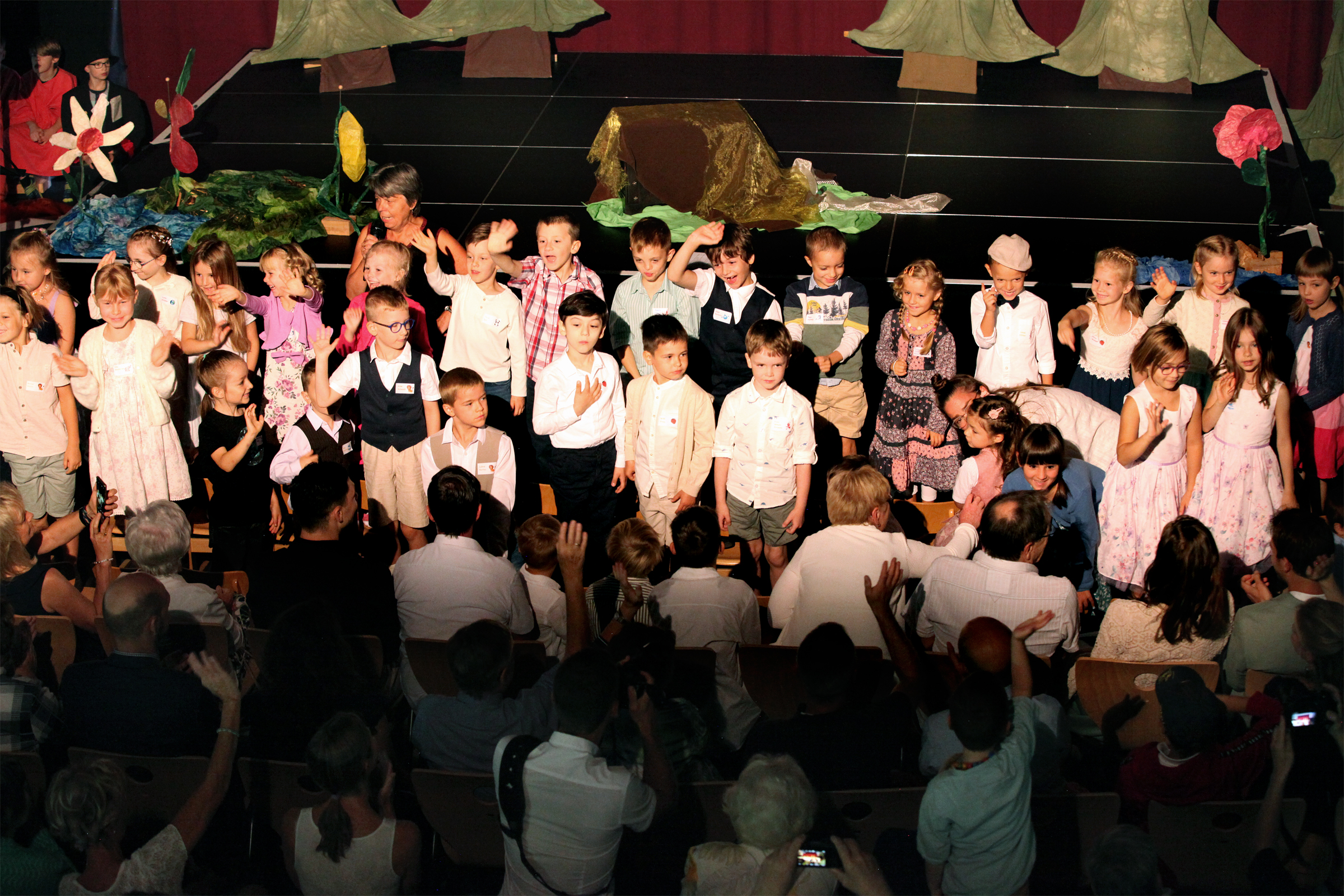 Die Kinder der Stammgruppen 3/4 hatten mit ihren Pädagog*innen am Donnerstag die Feier vorbereitet: Sie haben das Theaterstück „Die Wortschatzkiste“ eingeübt sowie Musikstücke und Lieder erarbeitet. Staunend und viel Beifall klatschend wurden die Darsteller*innen belohnt.