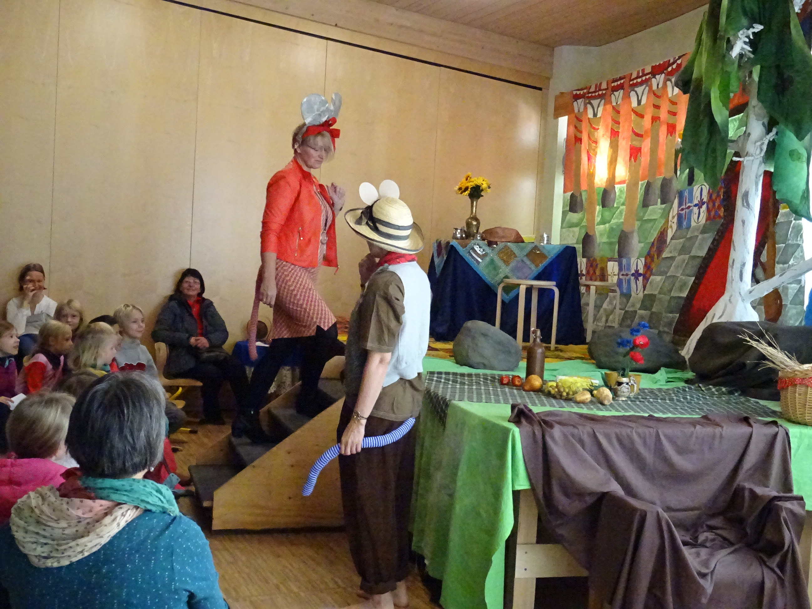 Am Samstag, dem 17.11.2018 kamen Neugierige, Schüler, Eltern und Ehemalige, um sich bei uns an der Schule umzusehen. Nach einem tänzerischen Einstieg in der Rotunde (Vielen Dank an Anja Kubitza und die Tänzerinnen!) stellten uns die Landmaus Heide und die Stadtmaus Anett ein typisches Pädagogenanspiel aus der Primarstufe vor. Es gab viel zu schmunzeln, als die ach so vornehme Stadtmaus der Landmaus etwas von „personality“ und Individualität erzählte. Und nicht vergessen: immer den kleinen Finger abspreizen! Im Anschluss wurde das Schulkonzept in der Primarstufe, der Sekundarstufe I und der gymnasialen Oberstufe vorgestellt. Alle drei Veranstaltungen waren gut besucht. Für uns als zunächst Vortragende war es besonders hilfreich, dass sich auch Eltern, die bereits ein Kind an unserer Schule haben, rege am Gespräch beteiligt haben. So konnten Fragen und Unsicherheiten zur Schullaufbahn der Schüler aus der Praxis heraus geklärt werden. Zeitgleich standen den Besuchern viele Gruppen- und Arbeitsräume zum Besichtigen und vor allem zum Mitmachen zur Verfügung. In der Mehrzweckhalle wurde in der Bewegungslandschaft geturnt. Experimentieren konnten die Gäste in der Tiergruppe und im Physikraum. In der Textilwerkstatt wurde gefilzt, in der Keramikwerkstatt getöpfert und in einer weiteren Werkstatt konnten Kerzen gezogen werden. Auch der Junior-Ranger-Wahlkurs stellte sich vor. Die Schülerbands der Stufen 5/6 und 7/8 sorgten für Unterhaltung im Obergeschoss. In den Stammgruppenräumen lagen Unterrichtsmaterialien und Schülerergebnisse zur Ansicht aus und gaben reichlich Anlass zu Gesprächen über die Besonderheiten des Schulkonzeptes. Einige Schüler der Jahrgangsstufe 5/6 leiteten Schulrundgänge an, um das Gebäude zu zeigen. Für das leibliche Wohl sorgte eine Projektgruppe aus der zehnten Jahrgangsstufe mit Kaffee, Kuchen und Herzhaftem. Herzlichen Dank an alle, die den Tag so aktiv mitgestaltet haben!