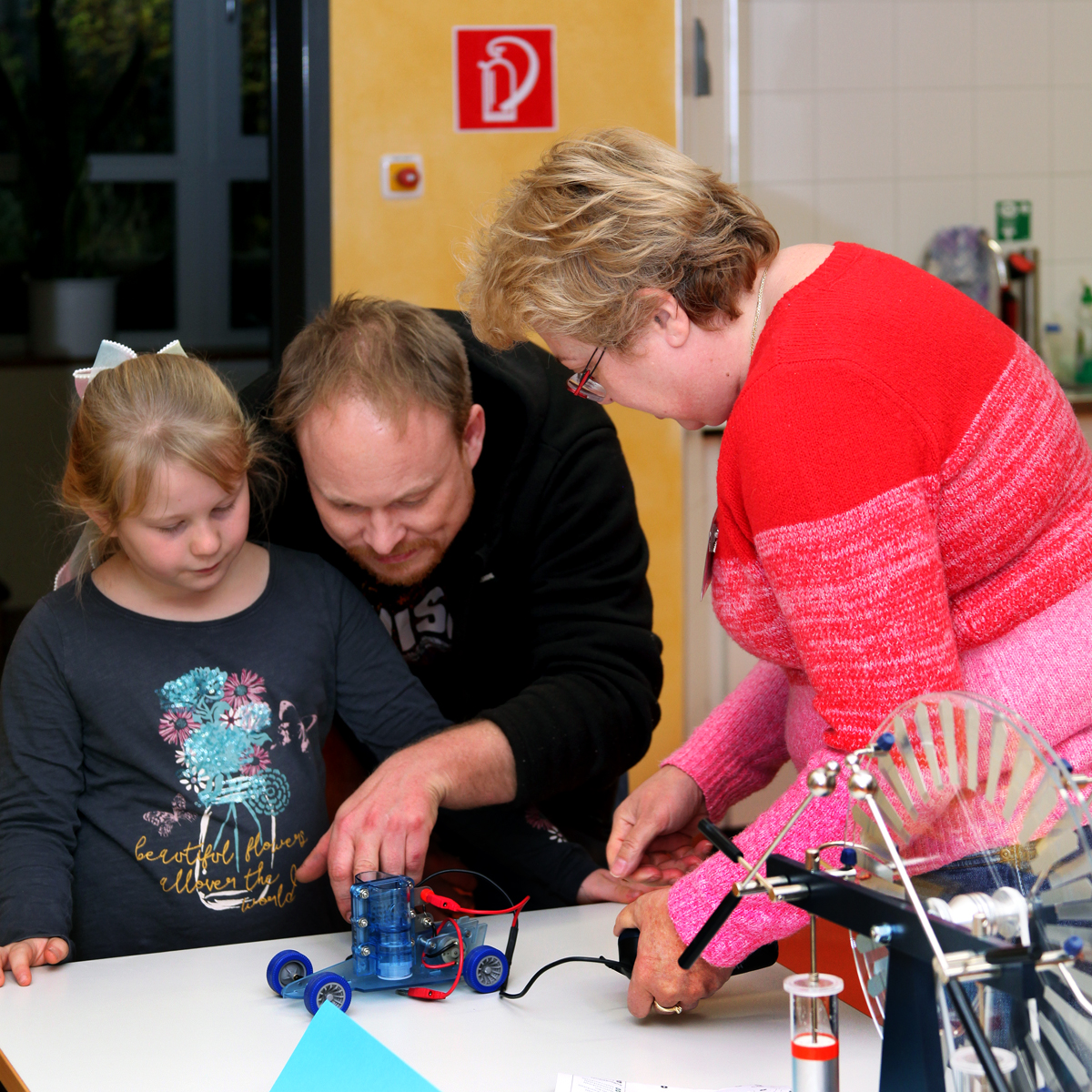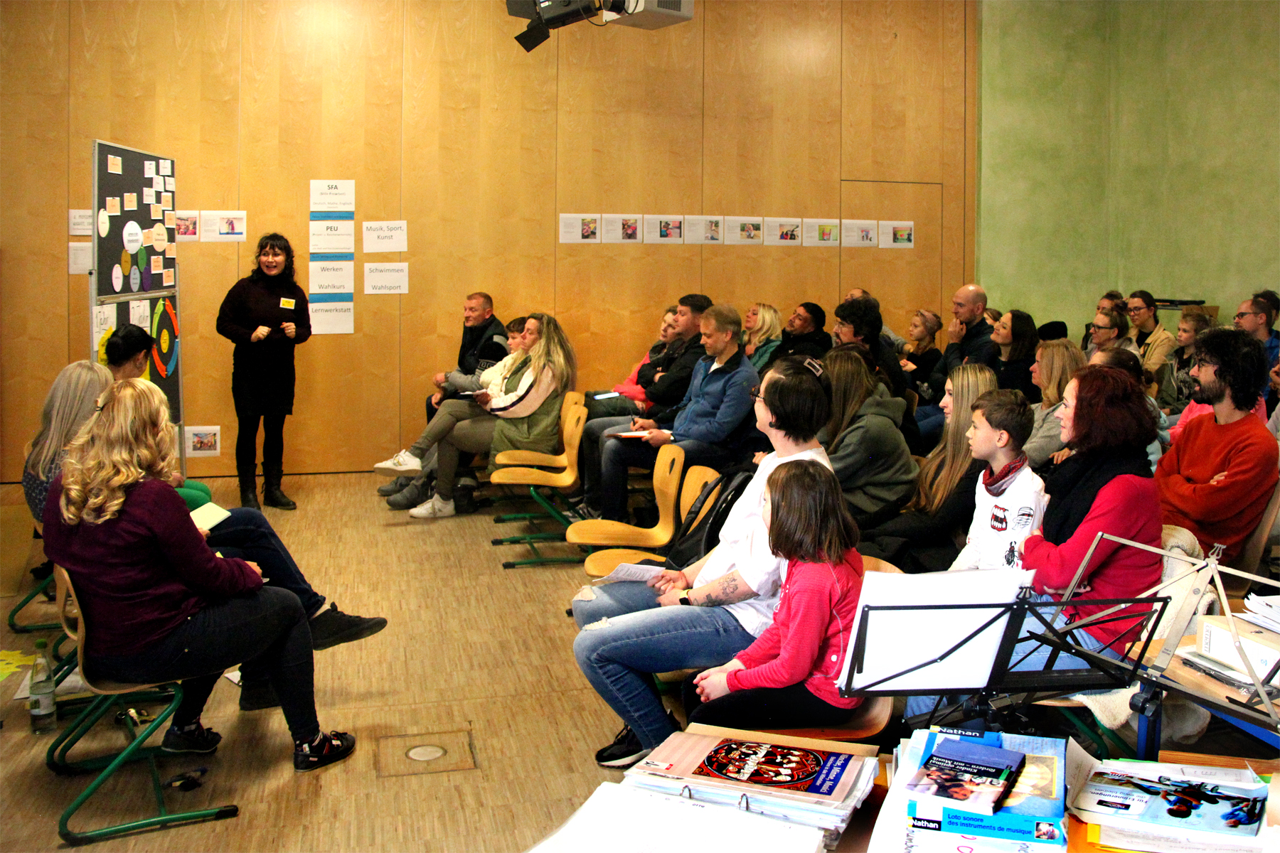 Viele Interessierte besuchten unsere Schule zum Tag der offenen Tür. Von 10.00 bis 13.00 Uhr herrschte reges Treiben im Schulhaus. Am Eingang wurden die Gäste von den Schulelternsprechern begrüßt. Schüler*innen der Jahrgangsstufe 9/10 hatten im Rahmen ihrer Jahresarbeit Aufsteller hergestellt, die den Besuchern Hinweise und Informationen zum Schulkonzept und einzelnen Räumen gaben.