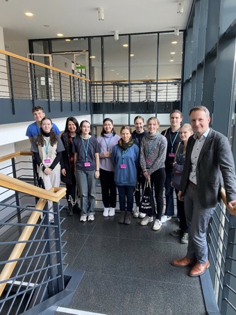 Der Wahlkurs „Demokratie“ der Jahrgangsstufe 9/10 besuchte am 01.12.2023 den Thüringer Landtag. Dort sprachen die Schüler*innen mit dem Landtagsabgeordneten Andreas Bühl (CDU) des Ilm-Kreises. Dieser informative Besuch wurde mit einem Mittagessen in der Abgeordnetenkantine abgerundet.